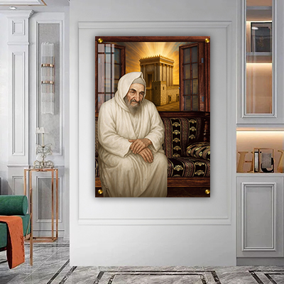 ציור של בבא סאלי על רקע בית המקדש על קנבס או זכוכית
