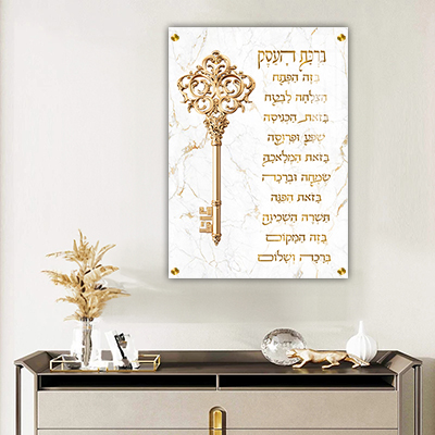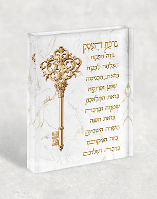 ברכת העסק עם מפתח הפרנסה מהווה מתנה ייחודית לבעלי עסקים חדשים, לפתיחת חנות או חנוכת משרד. הדפסה במגוון אפשרויות ומידות מאפשרת התאמה אישית לכל חלל עסקי.