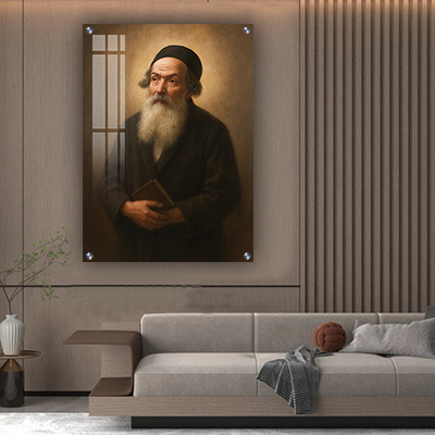 הציור משתלב היטב בסלון, בפינת לימוד או בבית כנסת. הוא מחבר בין מסורת, תורה ונוכחות חזקה של דמות שמלווה דורות של יהודים. זו מתנה עם ערך שמוסיף תוכן, אור והשראה יומיומית.