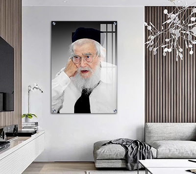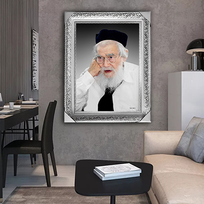 העיצוב מציב את פניו של הרב במרכז. הרקע נייטרלי, התאורה רכה והאווירה שקטה. כל פרט בציור מכבד את הדמות ונותן לה את המקום הראוי.
