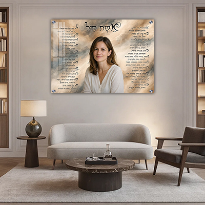 השילוב של תמונה אישית, ברכת אשת חיל ועיצוב מדוייק הופך את היצירה למתנה משמעותית במיוחד. זו מתנה שמביעה כבוד, אהבה והערכה, ומתאימה לבית, לפינה אישית או כמתנה לאירוע מרגש.