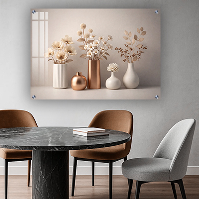 FL-91 תמונה לפינת אוכל של אגרטלים ופרחים בתלת מימד