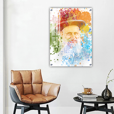 היצירה משתלבת באופן מושלם בחללים מודרניים או קלאסיים כאחד – סלון, פינת לימוד או משרד. הצבעוניות החמה והחיוך המרגיע של הרב מעניקים לתמונה תחושת שמחה אמיתית ומראה ייחודי שמושך את העין.