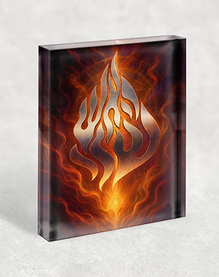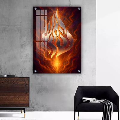 היצירה מציגה את סמל האש שלי במרכז, בגוון כסף מתכתי מרשים. המראה היוקרתי והמודרני מעניק ליצירה נוכחות חזקה ואנרגטית.