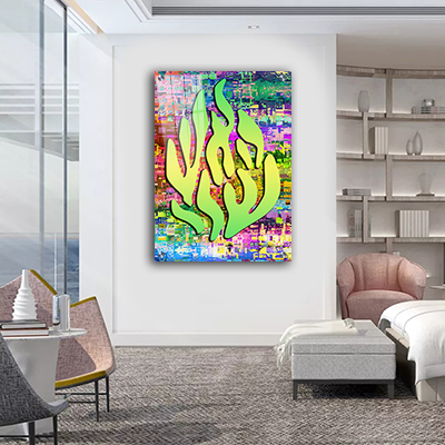 התמונה "האש שלי" בסגנון פופ ארט צבעוני יוצרת נוכחות בולטת ובלתי מתפשרת. הצבעים העזים, הסגנון הגרפי והטקסט הדומיננטי משדרים אנרגיה של תשוקה, נחישות וביטוי אישי חד.