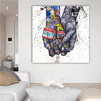 LF-81 תמונת זכוכית או קנבס של ידיים צבעוניות עם כיתוב גרפיטי לסלון או חדר שינה