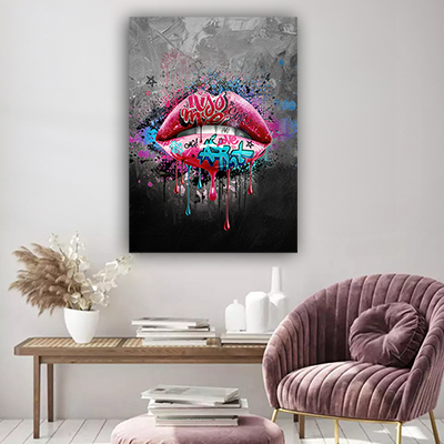 LF-89 תמונת גרפיטי של שפתיים על על זכוכית או קנבס