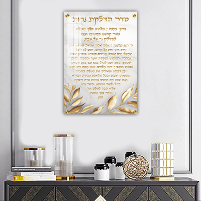 ניתן להזמין את הברכה על זכוכית, פרספקס או קנבס במידות שונות. איכות ההדפסה הגבוהה מדגישה את עומק הצבעים ואת הברק היוקרתי של הזהב. זו מתנה מושלמת לשבת, לחנוכת בית או לאישה שמוקירה את המסורת ואת היופי שבאמונה.