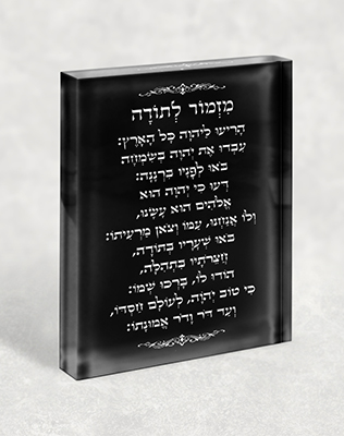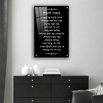 2605 – ברכת מזמור לתודה מעוצבת בגווני שחור ולבן על קנבס או זכוכית