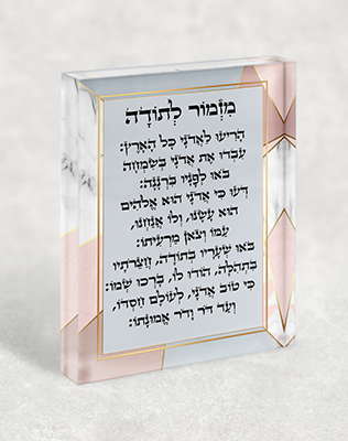 ברכת מזמור לתודה מבטאת הודיה פשוטה ועמוקה על החיים, הבריאות והחסדים. בעיצוב זה, הברכה מקבלת מראה נעים ואלגנטי בגווני לבן, אפור וורוד עדין. השילוב הזה מתאים במיוחד למי שמחפש עיצוב רגוע ומכובד לבית או למוסד.