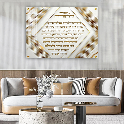 ברכת מזמור לתודה מודרנית בגווני לבן וזהב על קנבס או זכוכית
