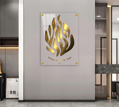2654 – תמונה של “האש שלי” בזהב על זכוכית מחוסמת אקסטרה קליר