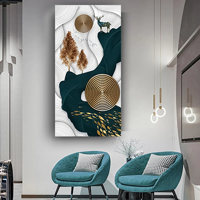 N-52 ציור מיוחד של נוף אבסטרקטי עם אייל ועצים בזהב