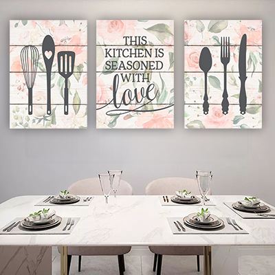 P-114 סט 3 תמונות למטבח או פינת אוכל על קנבס או זכוכית