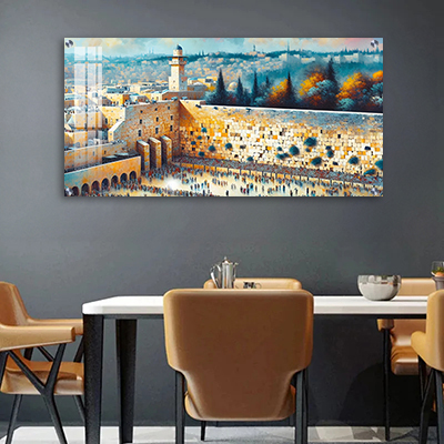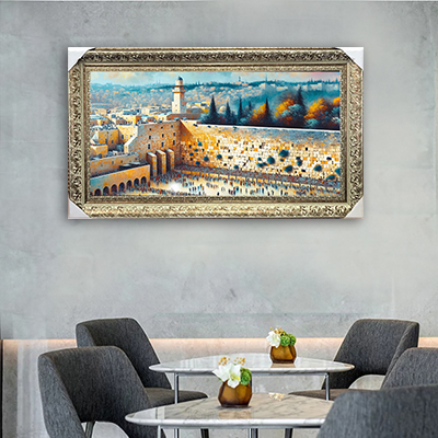 הציור מביא הביתה את תחושת הקדושה של ירושלים בעיצוב אמנותי ונקי. הוא משדר שלווה, איזון ואמונה ומעניק השראה בכל מבט.