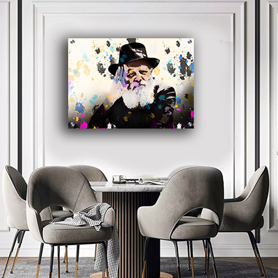 בציור זה מופיע הרבי מליובאוויטש בסגנון גרפיטי עכשווי, צבעוני ונועז. הציור מושך את העין בזכות שילוב מדויק בין קדושה יהודית לבין שפה אמנותית מודרנית. התוצאה – יצירה ייחודית שקשה להתעלם ממנה.