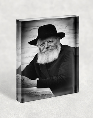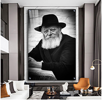 תמונת זכוכית או קנבס מעוצבת של הרבי מליובאוויטש נשען על הסטנדר – השראה קלאסית ועמוקה