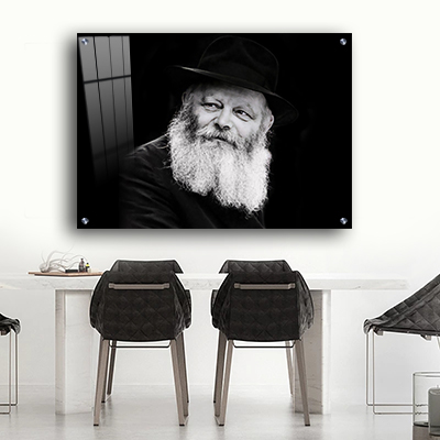 605 – תמונה של הרבי מליובאוויטש מביט הצידה בשחור לבן על זכוכית או קנבס
