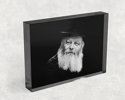 605 – גרסת הבלוק של התמונה של הרבי מביט הצידה בשחור לבן – מתנה קלאסית בעיצוב תלת מימד בשחור ולבן.