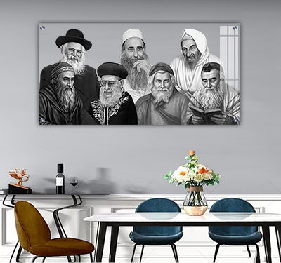 תמונת רבנים בעיצוב יוקרתי על זכוכית שקופה בגווני שחור לבן