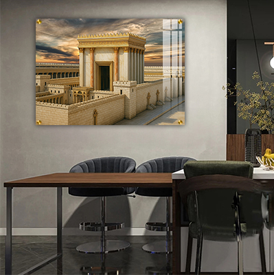 התמונה מתאימה לסלון, לפינת לימוד, למשרד או לכל מקום שמעוניין באווירה מוארת ורוחנית. הנראות המרשימה של בית המקדש בשילוב השקיעה מעניקה לכל חלל מראה מרומם ומלא חיים.