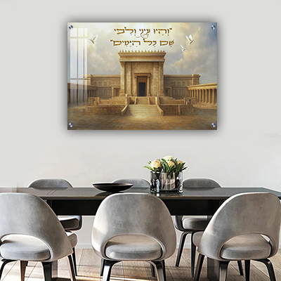 8011 – תמונה ריאליסטית של בית המקדש עם פסוק בזהב: "וְהָיוּ עֵינַי וְלִבִּי שָׁם כָּל הַיָּמִים"