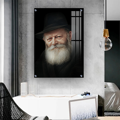 הרבי מליובאוויטש – ציור מרהיב על רקע שחור