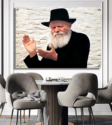 התמונה משתלבת נהדר בפינת לימוד, סלון או משרד. היא מוסיפה עומק, תנועה, וחיבור רוחני שמלווה את היום־יום. הרבי כמו נוכח ומעודד מתוך הקיר.