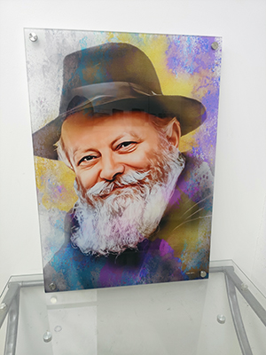 ציור זה מציג את הרבי מליובאוויטש מחייך חיוך רחב ומלא חום, בסגנון פופ ארט מודרני. השילוב בין ההבעה האנושית לבין הסגנון העכשווי יוצר תחושת חיבור יוצאת דופן, גם למי שלא נולד בסביבת חסידות חב"ד.