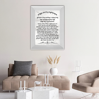 העיצוב משתלב נהדר בפינת נרות שבת, שידת כניסה או חדר שינה. כל מבט בטקסט מזכיר את הקדושה והאור שנכנסים לבית דרך פעולת ההדלקה.