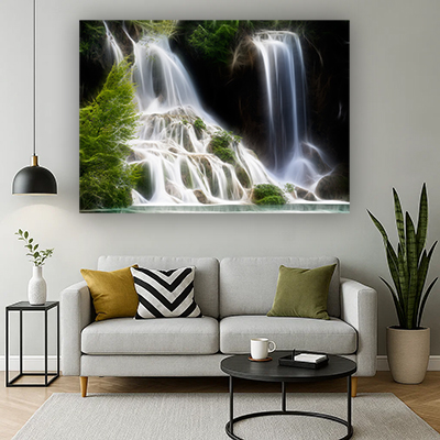 V-62 תמונת נוף של מפלי מים זורמים בטבע ירוק