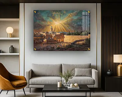 הציור יוצר חיבור ישיר לירושלים וללב העם היהודי. הוא מתאים לסלון מרכזי, לפינת אוכל או למשרד, ומעניק לחלל מוקד משמעותי ומלא אופי. הצבעים משתלבים היטב בעיצוב מודרני וגם בקו קלאסי יותר.