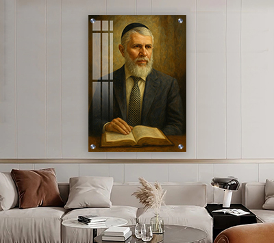 הקומפוזיציה בציור מדגישה את האור הפנימי של הרב. השולחן, הספר וההבעה הרגועה יוצרים אווירה של שלווה, חכמה וקדושה. הבחירה בקנבס או בזכוכית מחוסמת מעניקה ליצירה נראות עוצמתית ומתאימה לכל סגנון עיצוב.
